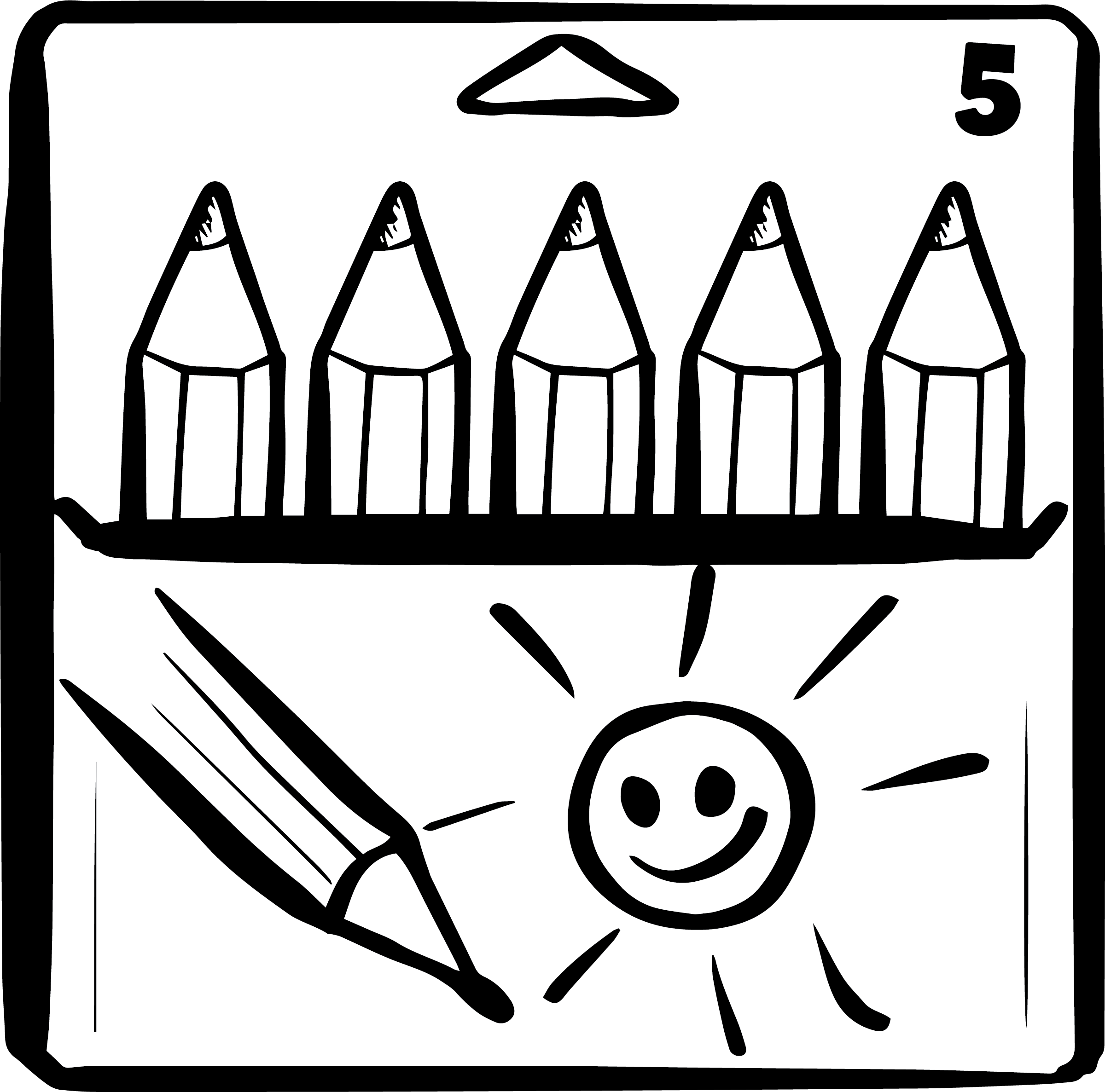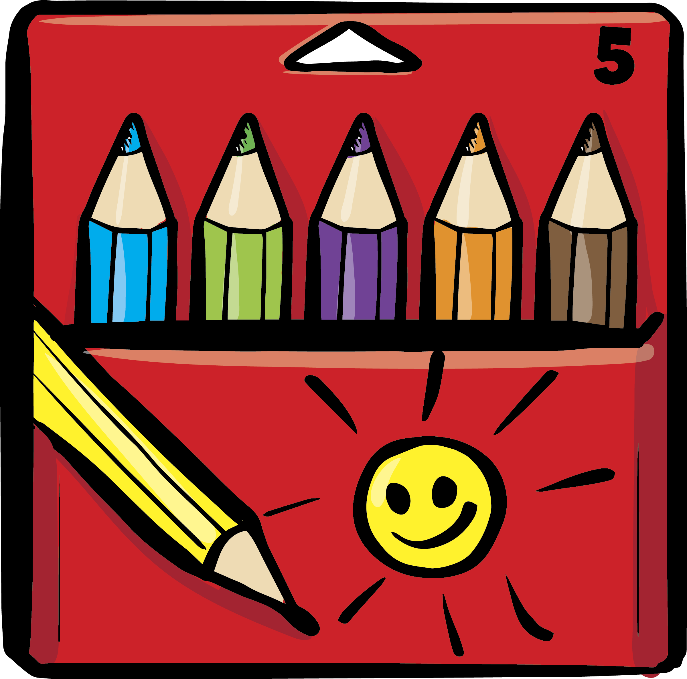 Clip Art image of a box containing five colored pencils. You can download the images below after reading the terms of use.