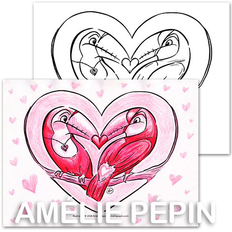 Coloriage - Toucans de la Saint-Valentin